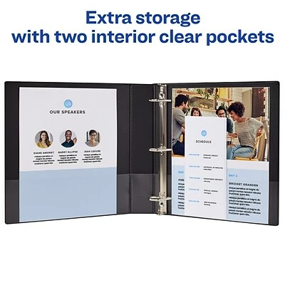 Don’t worry about exceeding sheet capacity; this durable view binder has additional storage with 2 interior clear pockets made with nonstick PVC-free material—no ink transfer