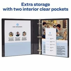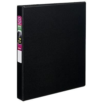 Customize the spine and cover of this durable black binder for a personalized look. The panels feature a smooth finish and linen pattern for a professional look and feel, while the DuraHinge and DuraEdge design provides resistance to splitting and other damage. This Avery durable binder has 1-inch rings, which hold up to 220 sheets of paper, and two stacked pockets for quick access to loose pages.