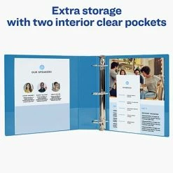 Designed to contain up to 650 pages, this Avery Durable 3-inch binder also features two inner pockets to provide additional storage for unpunched materials or folded notes. Wide front and back panels allow enough space for inserting standard sheet protectors, a helpful tool for preventing fingerprints or toner smudges from ruining the appearance of important documents.
