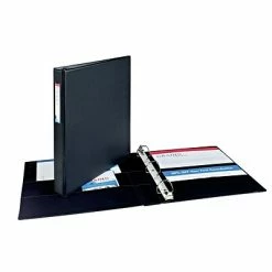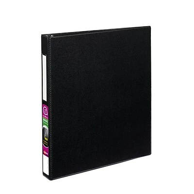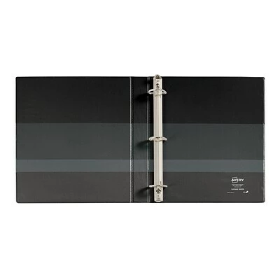 The heavy-duty Avery document binder is meant to be a constant accessory for keeping documents organized at school, work or home. The spine features a clear pocket for inserting a label so the binder can readily be identified on a shelf or among other material. The EZD rings are back-mounted so the binder can open up completely on a flat surface to make it more comfortable to take notes or arrange or rearrange documents. The rings are also gap-resistant, so pages can be turned smoothly without snagging ring holes or tearing sheets, and they keep documents locked firmly in place.
