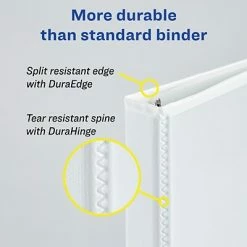 Binder features a DuraHinge design that’s stronger, lasts longer and resists tearing, and DuraEdge that makes the sides and top more pliable to resist splitting