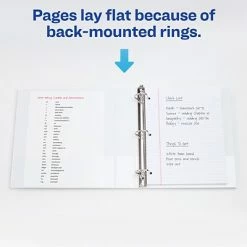 With the Avery Durable view binder, 3-inch slant-D rings hold up to 600 sheets of 8.5 x 11 inch paper. These innovative rings have a straight side that makes it simple to add and remove pages and a curved side that facilitates effortless page turning. Since the rings are mounted to the back cover, they let papers lie flat when then the binder is open for simple reading and note taking.