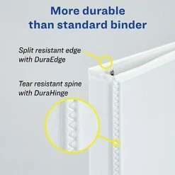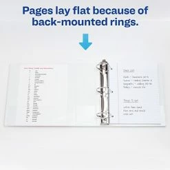Extra-wide cover for use with top-loading sheet protectors and extra-wide dividers. Crystal clear overlay enhances custom inserts on front cover, back cover and spine. Nonstick, archival-safe material won’t lift ink or toner off of printed pages. One Touch mechanism lets you open, close and lock your binder in one easy step. Easy Insert feature helps you place and remove personalized spine inserts quickly and easily. Gap Free feature prevents ring misalignment so pages turn smoothly. Locking EZD(R) Ring holds up to 50% more than same size round rings (20% more than slant rings). Back-mounted rings allow pages to lie flat. Four inside pockets store unbound materials for improved organization. Pages lie flat with back-mounted rings.