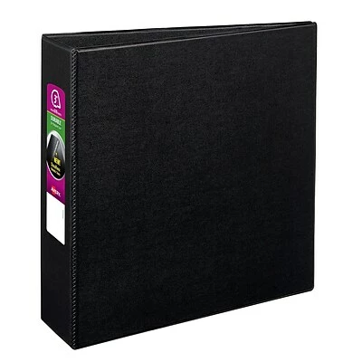 Avery 3-inch D-ring durable binders hold up to 670 pages, making them perfect for big projects and single, one-stop referencing while still taking up only a minimum amount of storage space on the shelf. Adding to their capacity, each Avery binder features EZD rings, which provide increased room for documents, when compared to similarly sized standard slant and round rings used in other notebooks. The four interior pockets in each of these durable non-view binders help users organize and secure loose papers that come in a variety of shapes and sizes.