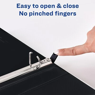 With this Heavy-Duty Nonstick View Binder you get one-touch operation and everyday durability. The DuraHinge(R) design is stronger, lasts longer and resists tearing, while the DuraEdge(R) feature makes the sides and top more pliable to resist splitting. A deep texture film offers a smoother finish and features a linen pattern for high-quality look and feel. The nonstick material prevents the cover from lifting toner or ink off printed pages making it ideal for archival projects. The slant rings have a higher page capacity compared to same size round rings and wider front and back binder panels fully cover standard dividers and sheet protectors. Easily store loose papers in the four clear interior pockets. Customize your title page using free templates and designs at avery.com/print.