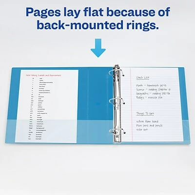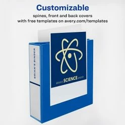 This Heavy-Duty View Binder with One Touch rings is perfect for extended use. From everyday referencing to classroom notes and home business use-this binder’s strong enough to handle them all. The DuraHinge(R) design is stronger, lasts longer and resists tearing, while the DuraEdge(R) feature makes the sides and top more pliable to resist splitting. Our deep texture film offers a smoother finish and features a linen pattern for high quality look and feel. Just pull the lever to open the rings for adding, replacing and removing pages. Then push to lock the rings in place. Even when filled to its 400-page capacity, this binder still has four stacked pockets for a bit of extra space inside. Customize the pacific blue cover with free, easy-to-use templates and designs at avery.com/print.