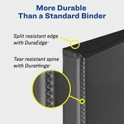 Binder features a DuraHinge design that’s stronger, lasts longer and resists tearing, and DuraEdge that makes the sides and top more pliable to resist splitting