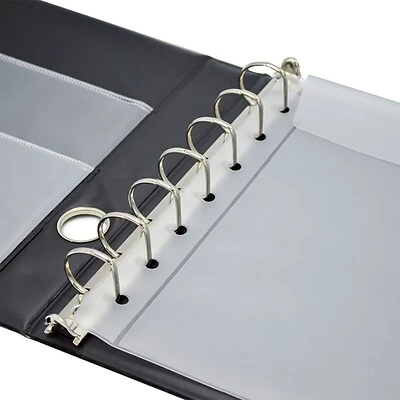 The Bindertek 7-Ring 1″ Deluxe Business Check Binder is the elegant solution to your check storage needs. The binder has a 225 sheet capacity and holds check sheets in a three page format. The cover is made from a padded, leather textured vinyl for added protection as well as a professional look and feel. It also includes a customizable spine label and a steel-rimmed finger hole for quick and easy shelf access.