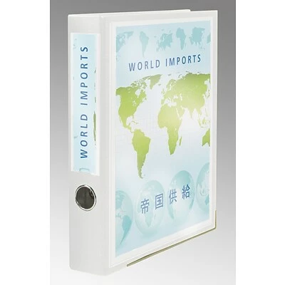 Our superior One-Touch View 3-Ring Binders are perfect for quick custom presentations. Acid-free clear front and spine overlays are nonstock and will not lift ink from your inserts. Hardbound linen-textured covers will stand up to years of use, keeping their good looks with the addition of an embossed Bindertek logo. Steel-reinforced edges protect binder from wear and tear. Steel-rimmed finger hole makes retrieval easy. 3-Ring mechanism is heavy-duty, opening and closing with one simple touch. Slanted D-rings so pages lie flat, with perfectly-aligning ball-and-socket ends for page turning without snags.
