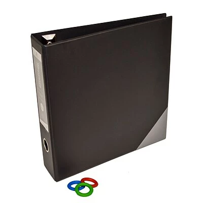 Bindertek 3-Ring Premium Vinyl Binders are made with high quality components so that they maintain their durability. These vinyl binders stand out amongst the competition for their sturdiness, sharp design and bold look. The vinyl material makes the binder easier to keep clean, and also makes them perfect for use at work, school or home. The heavy duty ring mechanism will stand the test of time, and includes EZ one-touch functionality. Each binder comes with three colored grip holes that can be swapped in and out as an added design element.