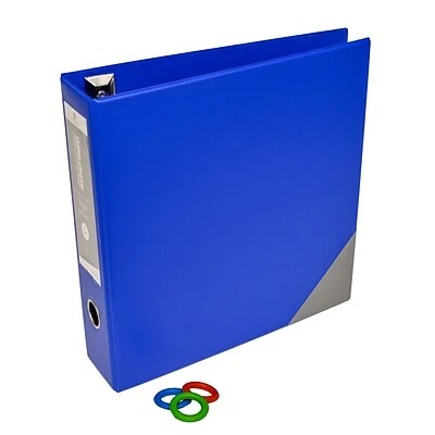 Bindertek 3-Ring Premium Vinyl Binders are made with high quality components so that they maintain their durability. These vinyl binders stand out amongst the competition for their sturdiness, sharp design and bold look. The vinyl material makes the binder easier to keep clean, and also makes them perfect for use at work, school or home. The heavy duty ring mechanism will stand the test of time, and includes EZ one-touch functionality. Each binder comes with three colored grip holes that can be swapped in and out as an added design element.