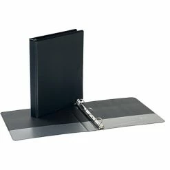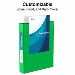 Our superior One-Touch View 3-Ring Binders are perfect for quick custom presentations. Acid-free clear front and spine overlays are nonstock and will not lift ink from your inserts. Hardbound linen-textured covers will stand up to years of use, keeping their good looks with the addition of an embossed Bindertek logo. Steel-reinforced edges protect binder from wear and tear. Steel-rimmed finger hole makes retrieval easy. 3-Ring mechanism is heavy-duty, opening and closing with one simple touch. Slanted D-rings so pages lie flat, with perfectly-aligning ball-and-socket ends for page turning without snags.