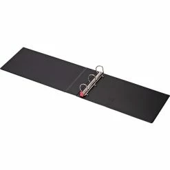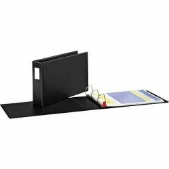 Cardinal EasyOpen Slant-D 3-inch D-ring non-view black tabloid three-ring binders secure up to 675 pages in a horizontal format. The proprietary Slant-D rings hold up to 25 percent more pages versus traditional round rings, reducing your need to order more binders. These heavy-duty binders store 11″ x 17″ pages, which is perfect for archiving large-format pages for employee timesheets, financial ledgers and marketing materials. Their sturdy construction works for storing these binders on shelves and in file cabinet drawers.