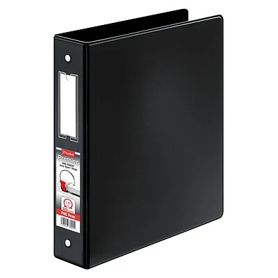 Add and remove pages to this black non-view binder easily. The nonstick poly construction of this binder prevents ink and toner from getting smeared on pages, while the spine’s label holder lets you identify contents without removing it from the shelf. This Cardinal EasyOpen non-view binder has 1.5-inch locking rings that hold up to 325 pages.