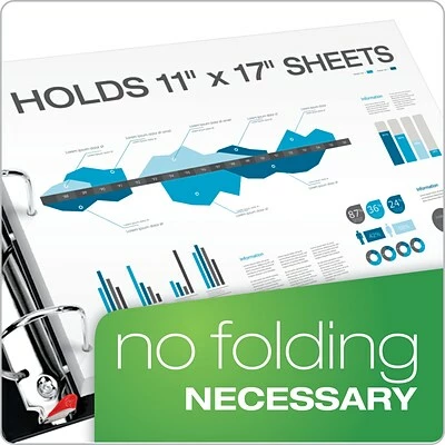 This Cardinal binder is white, with an XtraLife polyolefin cover that is environmental friendly when disposed, as opposed to vinyl. The binder is 2 inches thick and can hold sheets as big as 11 by 17 inches. It also features a GelTab, which secures the paper when triggered. Additionally, it is PVC-free and does not stick at all. The locking slant-D rings can hold more material than the typical round rings. The cover is also durable, taking up to three years to crack.