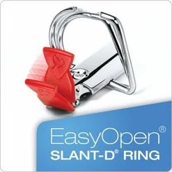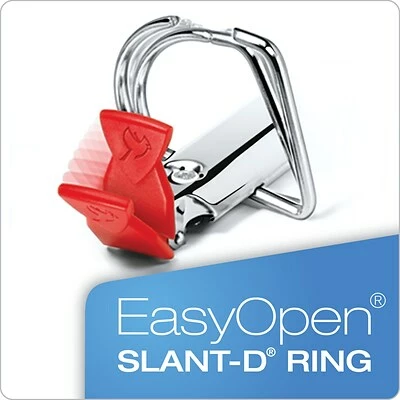 The Cardinal SuperLife EasyOpen 5-inch Slant-D ring binder utilizes ONE-TOUCH EasyOpen technology that lets users open, close and lock the rings with one simple motion. The slanted D-rings on this binder allow smooth, easy turning of documents for easy access without ripping or tearing. This Cardinal locking binder has double-fold living hinges that let it to open completely flat, giving users the ability to write neatly on papers without removing them from the binder.