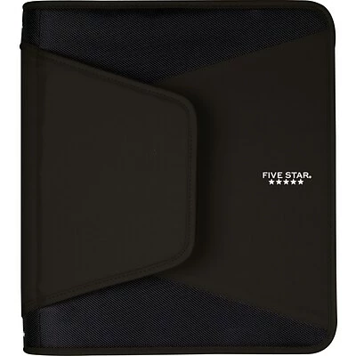 Five Star® 1 1/2″ Tech zipper binder in black color consists of large internal sections for organized storage. Binder includes special interior plastic that protects the papers and includes exterior pockets for securely keeping all the small items.