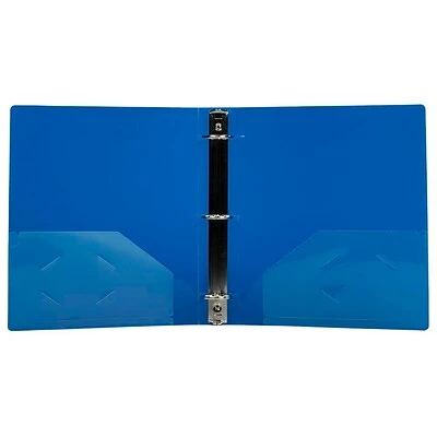 JAM Paper® Blue Plastic 3 Ring Binder features a class twill finish and enough space to store approximately 275 sheets of paper. Designed to provide more storage space than the standard 1 inch binder, the vibrant color and size of this binder can help you stay organized at school or at work. Made of light, yet durable plastic, these binders are easily portable and ideal for protecting papers from class room to board room. With about 10 x 11 inch covers, they fit all standard sized documents. They also feature an inside pocket and business card on the left the inside cover for extra storage and organization convenience.