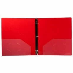 JAM Paper® Red Plastic 3 Ring Binder features a class twill finish and enough space to store nearly 200 sheets of paper. Designed to fit easily in a backpack or on your office shelves, the vibrant color and convenient size of this binder can help you stay organized at school or at work. Made of light, yet durable plastic, these binders are easily portable and ideal for protecting papers from class room to board room. With about 10 x 11 inch covers, they fit all standard sized documents. They also feature an inside pocket and business card on the left the inside cover for extra storage and organization convenience.