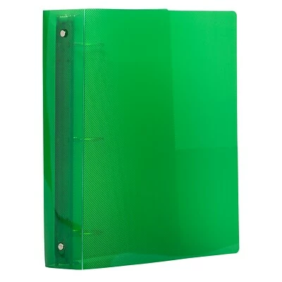 Binders are made from durable flexible plastic, are 3-ringed and have a unique ridged glass twill finish