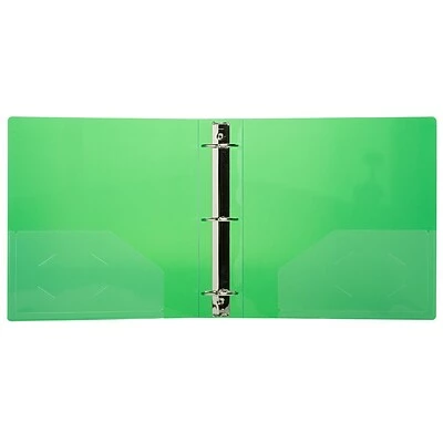 JAM Paper and Envelope’s Plastic 2-inch three-ring binders in smoke gray are perfect for back to school, home or the office. These three-ring binders have a 2-inch width and can store and fasten all standard 8.5 x 11-inch three -hole punch documents. Binders are made from durable flexible plastic and have a smooth glass twill finish. These are not flimsy binders, but they aren’t stiff plastic either. They fall right in between and can hold approximately 275 sheets of paper. In side there are three round metal bindings and two button separators, designed to open and close binder rings easily. Use these to organize homework, memos, presentations, projects or any other important documents.