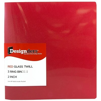 Binders are made from durable flexible plastic, are 3-ringed, and have a unique ridged glass twill finish