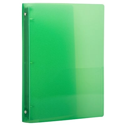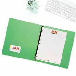 JAM Paper® Green Plastic 3 Ring Binder features a class twill finish and enough space to store approximately 175 sheets of paper. Designed to fit easily in a backpack or on your office shelves, the vibrant color and convenient size of this binder can help you stay organized at school or at work. Made of light, yet durable plastic, these binders are easily portable and ideal for protecting papers from class room to board room. With about 10 x 11 inch covers, they fit all standard sized documents. They also feature an inside pocket and business card on the left the inside cover for extra storage and organization convenience.