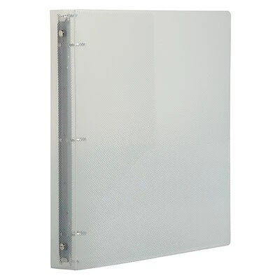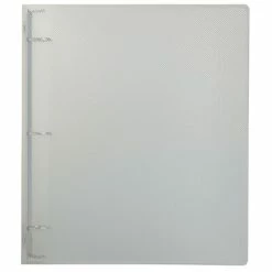 Because this binder has a clear front and back cover, its contents can easily be identified. The clear covers also provide a professional look when the binder is stored on a shelf. The JAM Paper twill grid 1-inch round ring binder also features a glass twill pattern that adds texture and interest. The front and back cover are made out of a flexible plastic, which means the binder can fit into small spaces, especially if the binder is empty. The 11.6 x 10.4 inch plastic binder is durable and long-lasting. It comes in additional ring sizes including 1.5-inch, 2-inch and 3-inch.