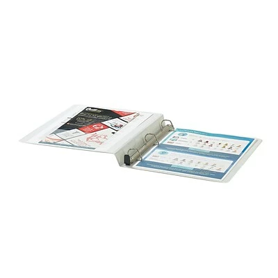 Heavy duty construction for lasting durability. Easy Open rings open and close, with one simple motion. Four pockets help keep extra papers organized. PVC-free, non-stick clear covers for 3 sided customization.