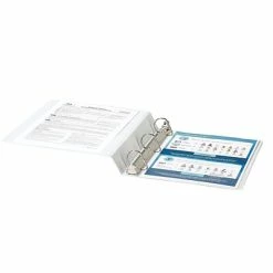 Create outstanding presentations and proposals with Quill Brand 1.5-inch white three-ring D-ring binders. The transparent overlay on the front, back and spine make it easy to clearly label your documents, and the large 300-sheet capacity offers plenty of space. Two interior pockets provide a space for small, critical documents, such as meeting agendas.