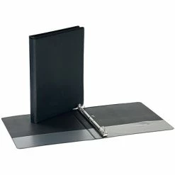Clear overlay for customization on all three sides. PVC-free, non-stick material will not damage contents. Clear pockets on the inside front and back covers are ideal for storing loose documents. Back mounted round rings provide a cleaner look. Holds 8 – 1/2″ x 11″ sheets. 1/2″. Black. 125 sheet capacity.