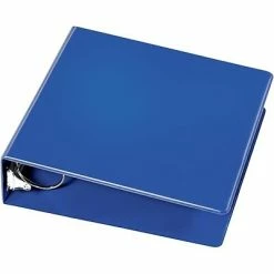 Buy PVC-free Quill Brand 3-inch binders in dark blue, which hold up to 575 sheets of paper documents and photos. They are acid-free for archival storage.
