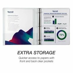 Clear overlay with non-glare finish on front, back, and spine allows for complete customization of the binder with ease