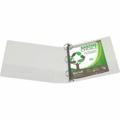 Removable rings for easy recycling. Chipboard is made from 100% recycled material. Acid-free polypropylene. Rings are mounted on back lid to reduce wear on paper. Clear overlay on front, back and spine for easy customization. Extra storage for loose documents with two clear inside pockets. A portion of the proceeds from each binder purchased is donated to American Forests to help plant a minimum of 7,500 trees annually.
