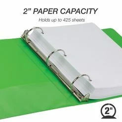 This binder can comfortably hold up to 425 sheets of three-hole punched paper