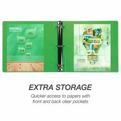 This ring binder has durable chipboard made from 100% recycled material and a minimum of 98% post-consumer content