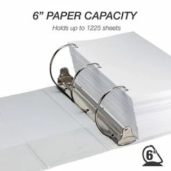 Hold up to 1,250 sheets of paper with this Samsill heavy-duty 6-inch white view binder. The covers are made with sturdy chipboard and are nonstick, so they won’t smear the ink on any pages. This Samsill heavy-duty view binder has a clear overlay on the spine and covers, so you can customize and insert your own labels.
