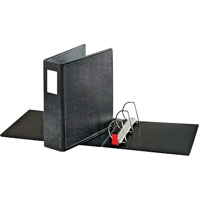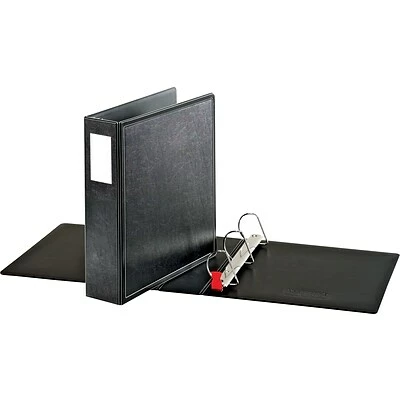 Cardinal black heavy-duty binder features back-mounted rings that keep pages flat when the binder is open