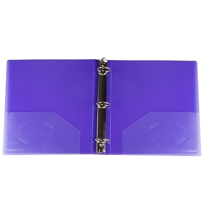 JAM Paper® Purple Plastic 3 Ring Binder features a class twill finish and enough space to store approximately 200 sheets of paper. Designed to provide 50% more storage space than the standard 1inch binder, the vibrant color and convenient size of this binder can help you stay organized at school or at work. Made of light, yet durable plastic, these binders are easily portable and ideal for protecting papers from class room to board room.