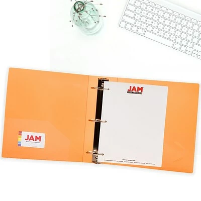 JAM Paper® Orange 3-Ring Plastic Binders are made of light weight, yet durable plastic and feature a texture, glass twill finish. With the capacity to fit 500+ sheets of paper, this binder is designed for higher volumes of documents. Stay organized by color categorizing your notes and files with this bold and vibrant orange. With 10.4in. x 1in. x 11.6in (about 10 x 11 inch) covers, they fit all standard sized documents. Use it to protect your documents from classroom, around campus, to the office, to the boardroom, and beyond. Size: 10.4in. x 1in. x 11.6in | Color: Green| Quantity: 1 (sold individually)