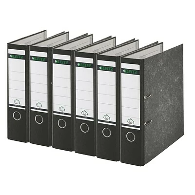 Made by Leitz brand of Germany, this world-renowned lever arch file binder will keep you organized. Coated in marbled paper this 2 ring A4 size binder features a rigid pressboard cover, standard European 8 cm hole spacing, slotted cover, finger grip hole, metal reinforced edges and a self-adhesive label. With a touch of a finger, the classic European lever arch ring mechanism opens and closes the rings effortlessly. The patented 180 degrees lever arch mechanism features a wider opening for ease of use.
