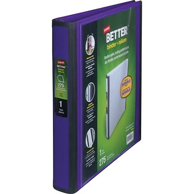 Enjoy efficient storage options with this Staples Better 1-inch view binder. This binder’s 1-inch D rings comfortably hold up to 275 sheets and ensure that pages can lie flat for easy reading and writing, while the reinforced rubberized spine resists tearing. This Staples Better 1-inch view binder can be personalized with custom inserts on both covers and the spine.