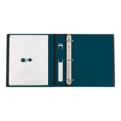Color-code documents with this dark teal Staples Better view binder. The reinforced spine and edges stand up to frequent use without splitting or cracking, and the D rings close securely to prevent papers from falling out. A clear view window and spine insert make it easy to add labels for easy subject identification. This Staples Better view binder holds up to 540 pages, making it ideal for use in reception desks, warehouses and large offices.