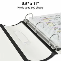 With 3-inch D-rings that open and close with just the touch of a finger, this Staples nonstick view binder makes document organization easier. Durable 3-inch D-rings hold up to 600 sheets of standard 8.5 x 11 inch paper, so it’s the ideal choice for large reference manuals and training guides. Two interior pockets on this Staples 3-inch D-ring binder provide additional storage for loose pages, handouts and other important documents to keep them easily accessible