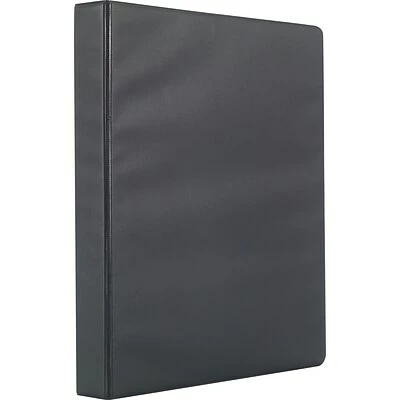 The Simply black non-view binder offers the Staples 100 percent satisfaction guarantee