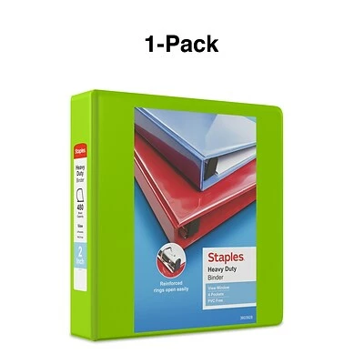 Use this heavy duty view binder to create training manuals and other reference material. The covers are constructed with sturdy, non-stick material that doesn’t smear ink or toner on printed pages, while the four stacked pockets offer additional organization options and room for loose pages. This Staples 2-inch D-ring view binder has back-mounted rings that let pages lie flat and can hold up to 500 sheets.