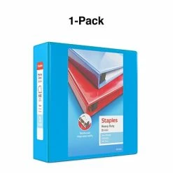 Keep paperwork sorted and filed in this Staples heavy duty view binder. A clear overlay offers space for title pages or labels, while the 3-inch D-rings close securely to prevent pages from slipping out. Four interior pockets provide convenient storage for sticky notes, pens, or loose papers. This Staples heavy-duty view binder is crafted from nonstick materials, preventing ink and toner transfer.