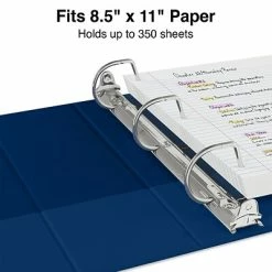 Keep documents safe and readily accessible with this Staples standard 350-sheet-capacity 1 1/2-inch D-ring blue binder.