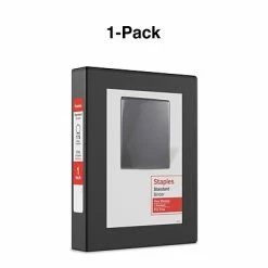 Stay on top of paperwork and assignments with this mini view binder. This binder holds up to 175 pages and offers round rings that resist gapping, so you can turn pages with ease, while the nonstick, archival-safe material prevents toner and ink from being lifted from printed papers. This Staples standard mini view binder includes two inside pockets, providing additional storage and organization options.