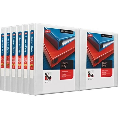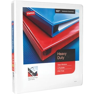 These Staples PVC-free binders offer a gap-free ring design for frustration-free turning of pages, slant D-rings for maximum storage capacity and interior pockets for storage of loose pages. Expertly constructed for dependable storage over a long period of time, the Staples 1″ heavy-duty view binder is suitable for use at home, work, school and all places in between. With its innovative design and high quality manufacturing, these Staples view binders take the stress out of staying organized.